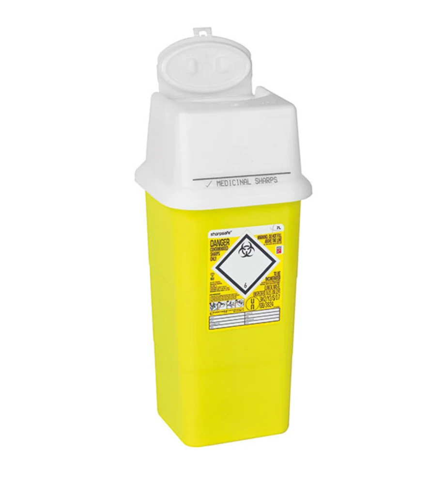 De Sharpsafe naaldencontainer kan gebruikt worden om veilig gebruikte naalden en insulinenaalden in weg te werpen.Â